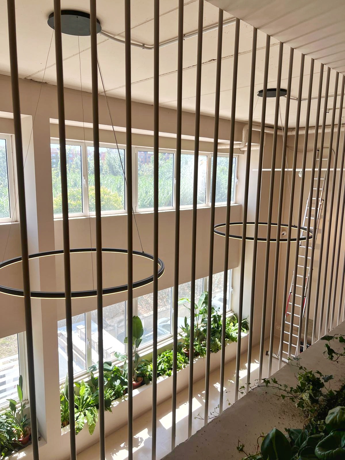 El resultat és un sistema de jardineres interiors que actua com un paisatge vegetal continu dins de l’edifici.