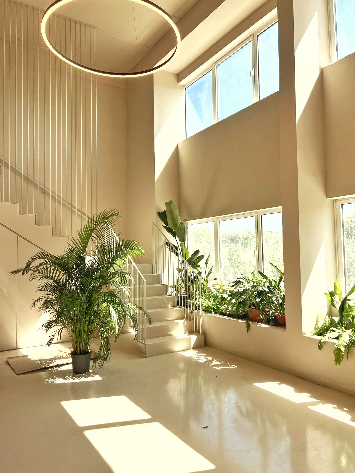 Aquest tipus d’espai permet treballar amb plantes de gran format i composicions tropicals, capaces de dialogar amb l’escala de l’edifici i aportar volum vegetal sense interferir en els recorreguts de circulació.
